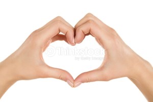 Close up of female hands making heart shape isolated on white background