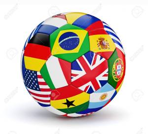 Soccer ball with world countries flags isolated